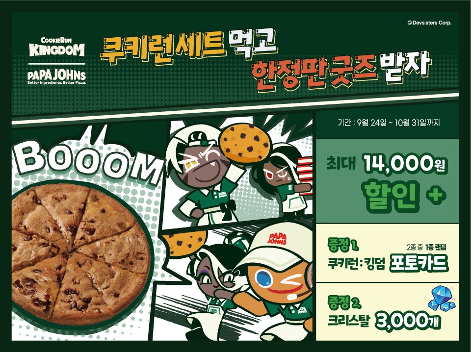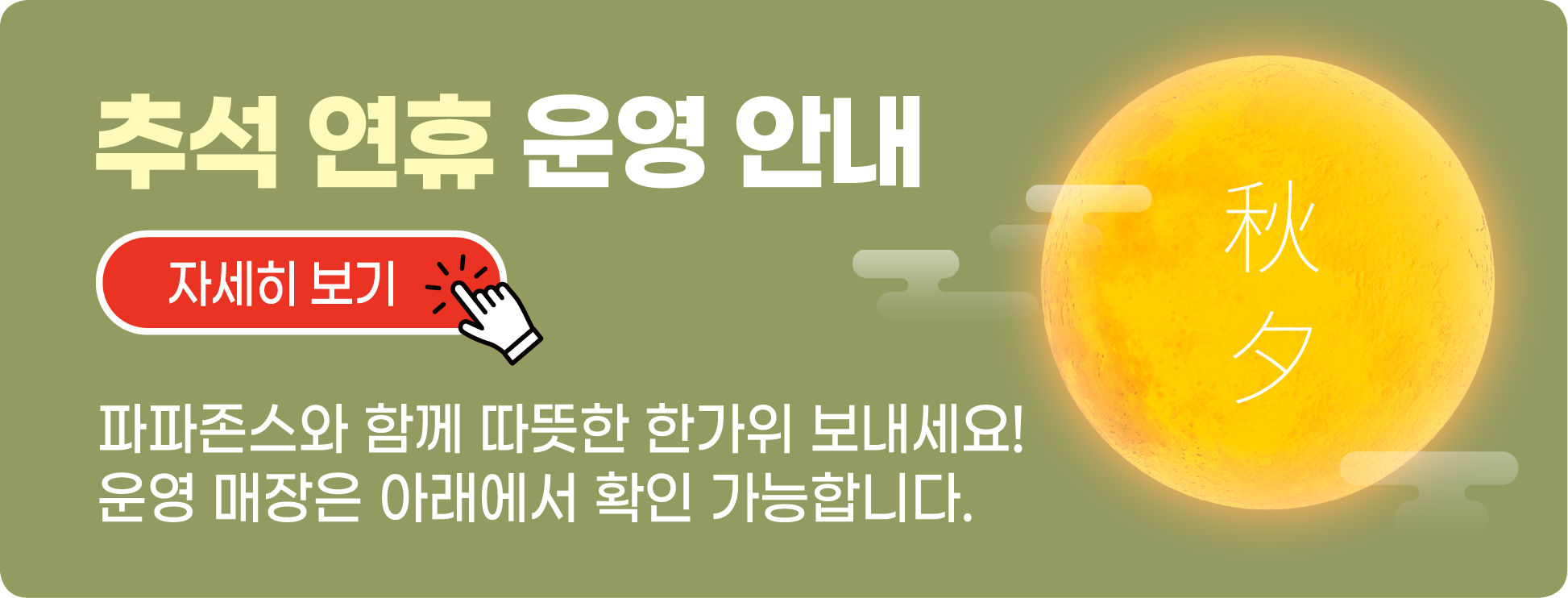 파파존스 피자는 귀하의 정보를 수시 저장하고 찾아내는 ‘쿠키(cookie)’를 사용합니다. 단, 귀하의 정보를 쿠키에 저장하지 않습니다.쿠키란 파파존스 피자의 웹사이트를 운영하는데 이용되는 서버가 귀하의 브라우저(인터넷 익스플로러, 넷스케이프 등)에 보내는 아주 작은 텍스트 파일로서 귀하의 컴퓨터 하드디스크에 저장됩니다. 또한 귀하께서는 쿠키에 대한 선택권이 있습니다. 웹브라우저 상단의 도구 → 인터넷옵션 탭(option tab)에서 모든 쿠키를 다 받아들이거나, 쿠키가 설치될 때 통지를 보내도록 하거나, 아니면 모든 쿠키를 거부할 수 있는 선택권을 가질 수 있습니다. 다만, 쿠키를 거부할 경우에는 로그인이 필요한 서비스를 이용할 수 없습니다.쿠키는 PC의 로그아웃 시에 자동으로 PC에 저장되지 않고 삭제되도록 되어 있으므로 공공장소나 타인이 사용할 수 있는 PC를 사용하실 경우에는 로그인 후 서비스 이용이 끝나시면 반드시 로그아웃을 해주시기 바랍니다.