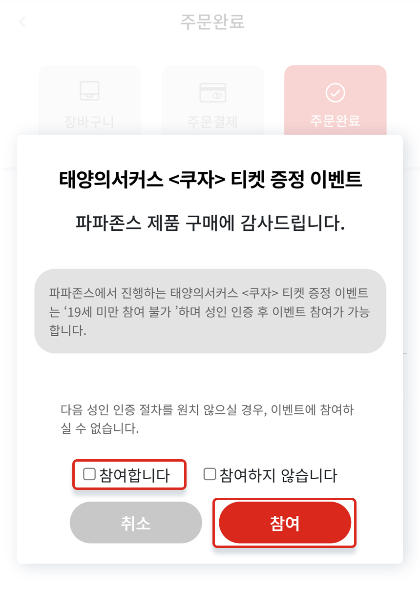 • 결제 완료 페이지 이벤트 팝업에서 참여합니다