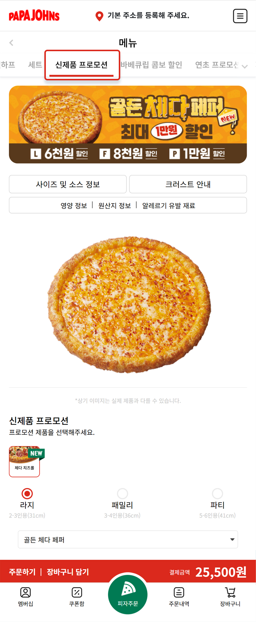 한국파파존스(주)는 회원의 개인 정보 보안에 대해 최선의 노력을 다합니다.